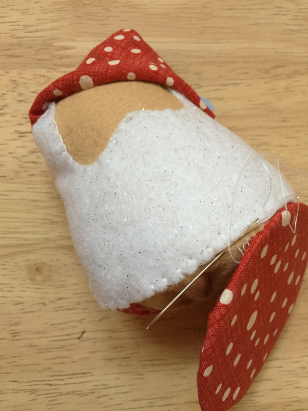 7. Sew base to santa’s body, hiding the cone opening.
